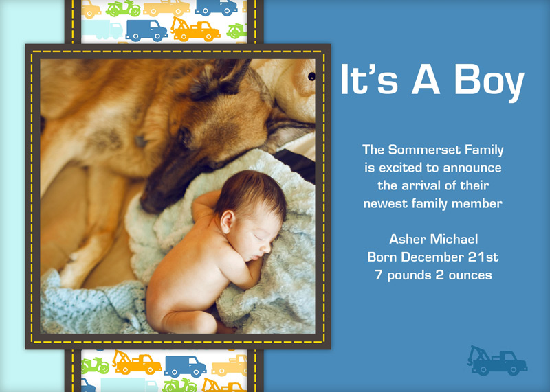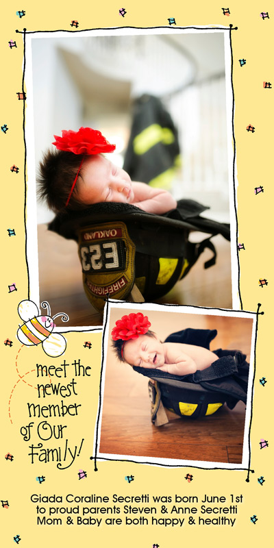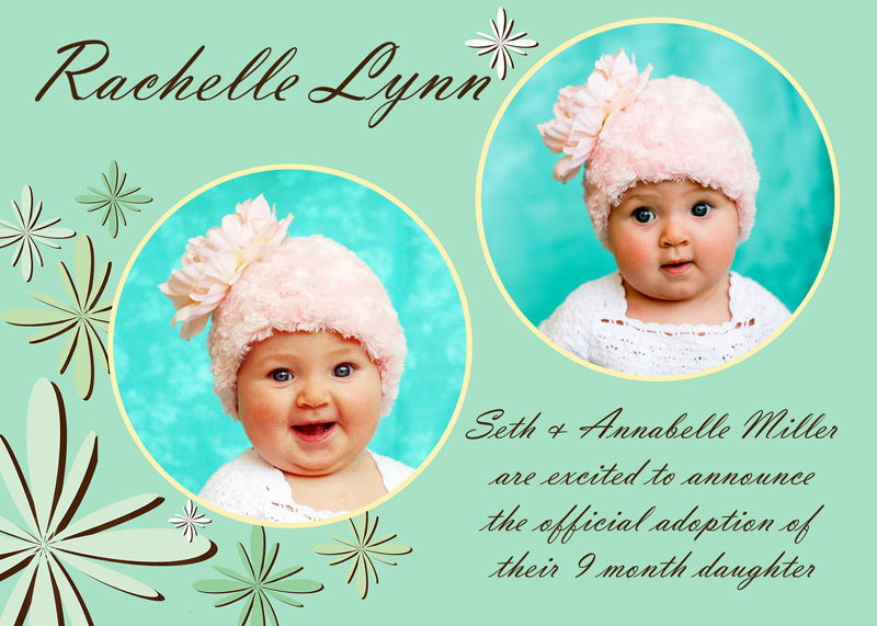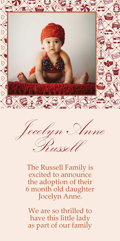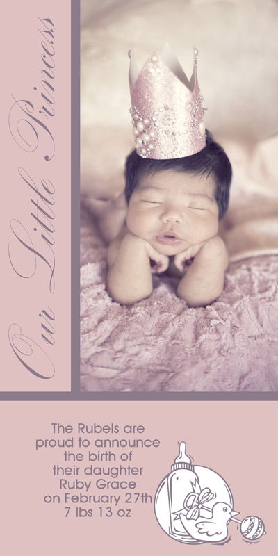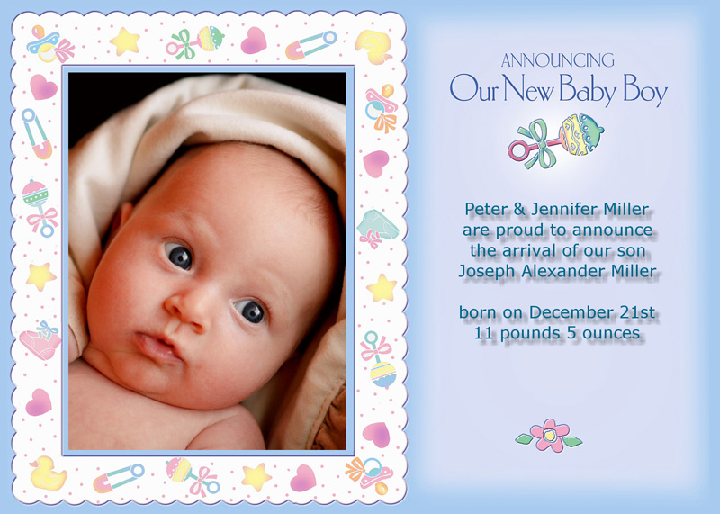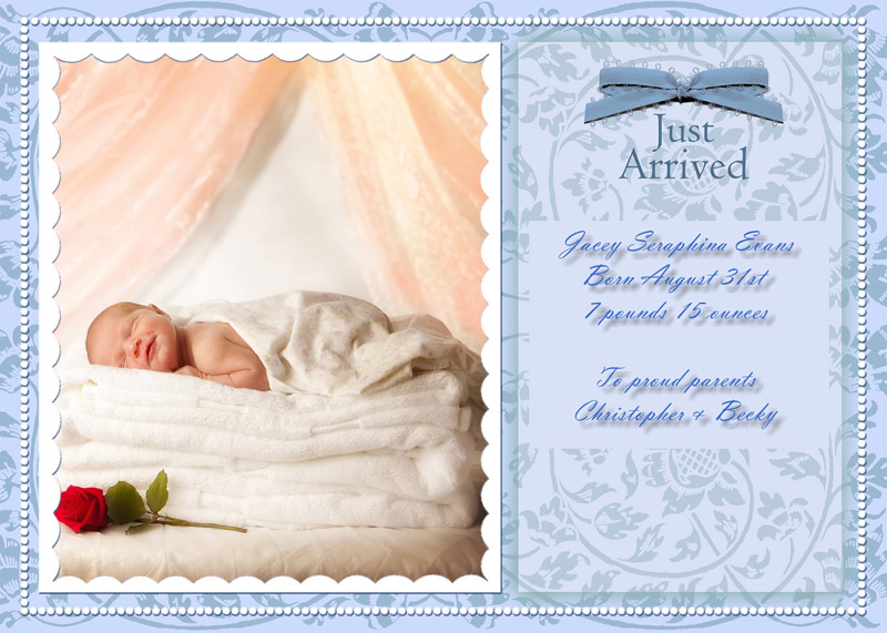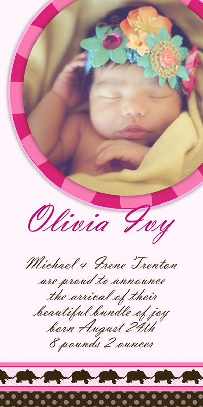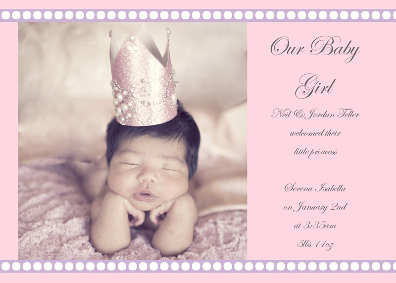Get The DetailsDesigns include 4x8 Slimline Greetings and 5x7 Cards, in your choice of horizontal and vertical formats. Birth Annoucements Cards on Professional Papers are single-sided and can be personalized with your own text.