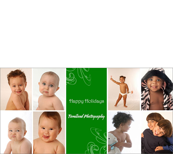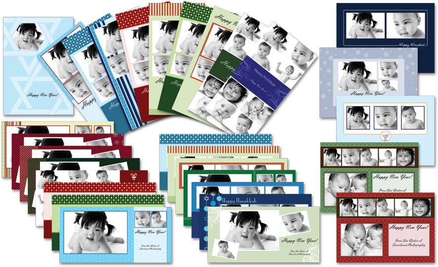 Get The DetailsEach Holiday Card Sample Pack includes 1 card each of up to 39 different card designs using your sample image(s), plus an 8x10 Promo sheet for you to show your customers the available fonts and text colors.
