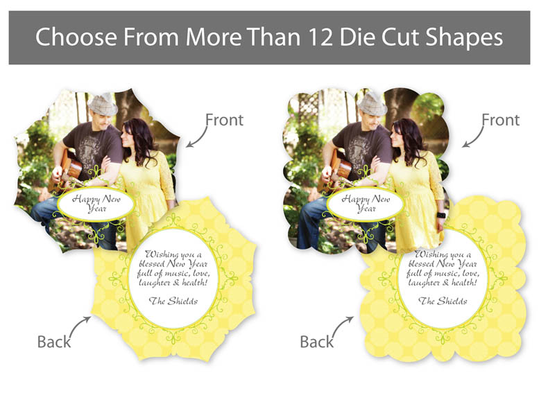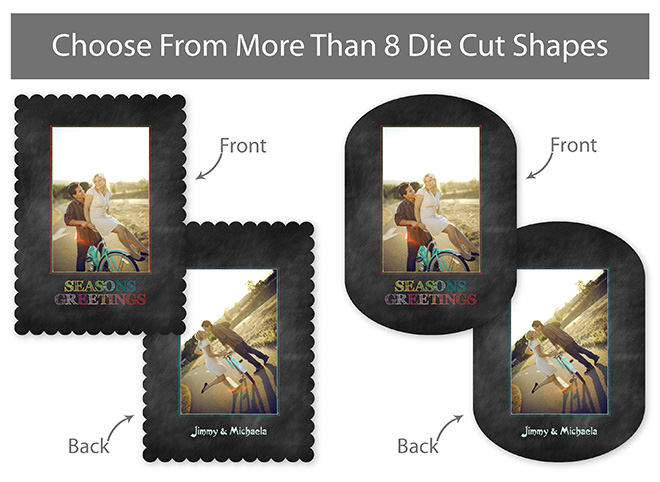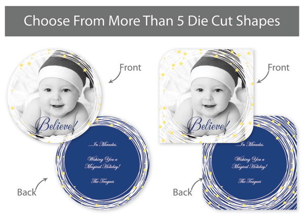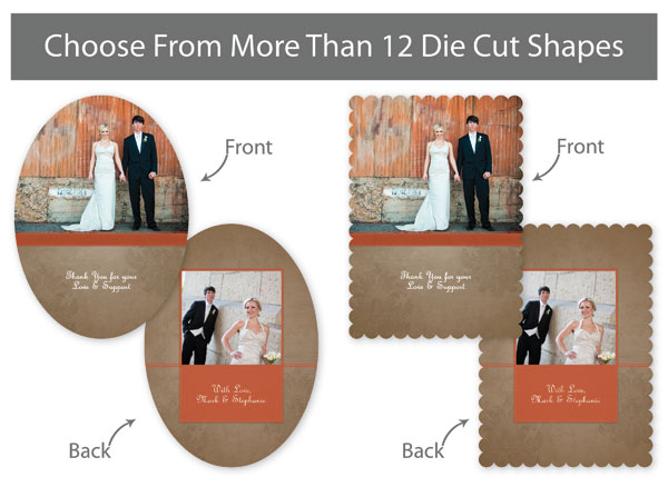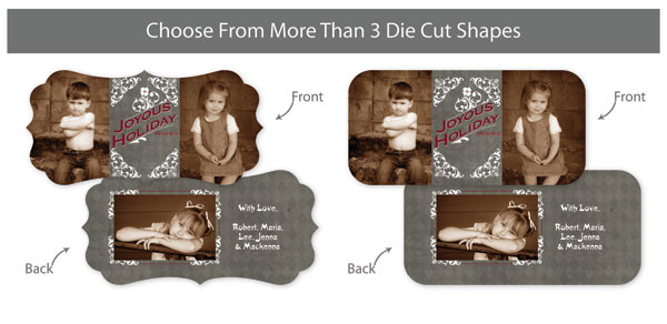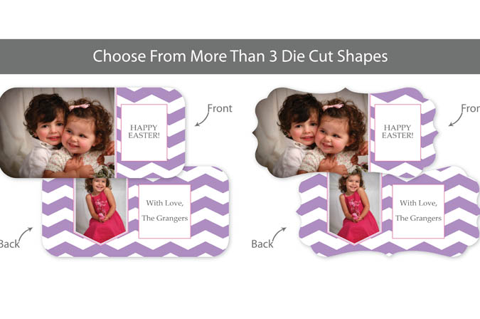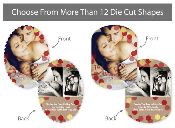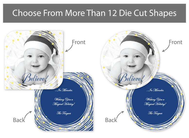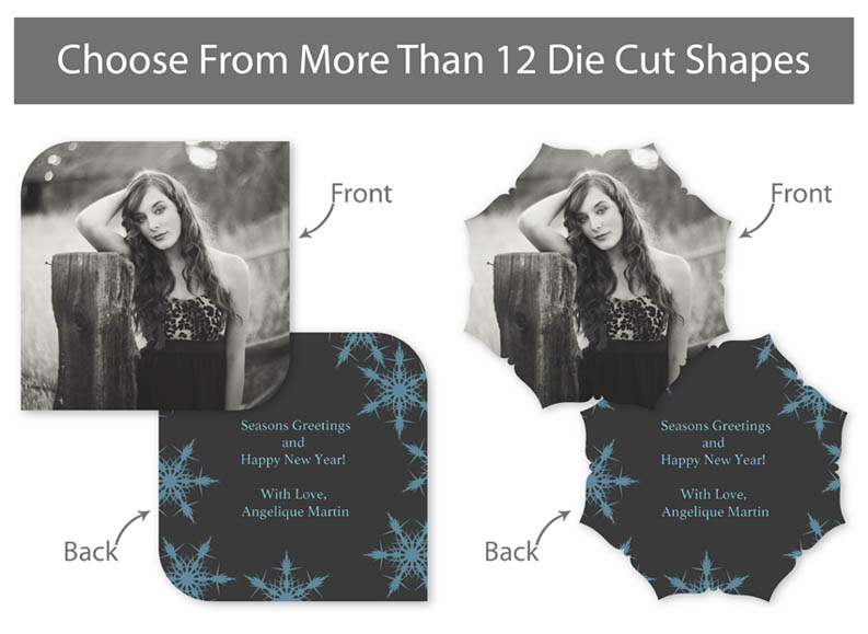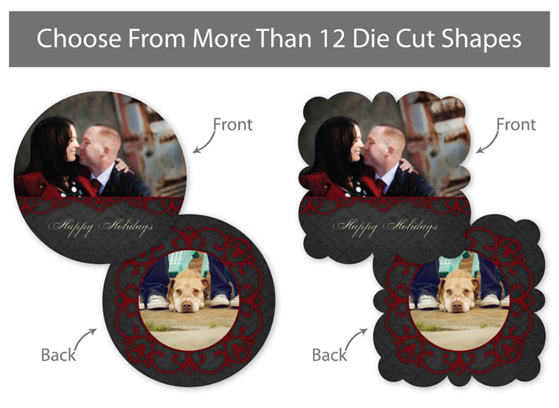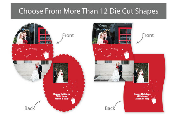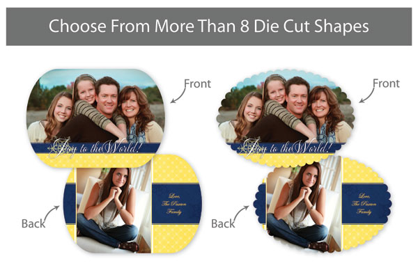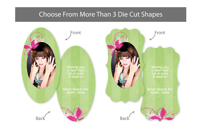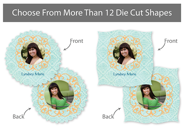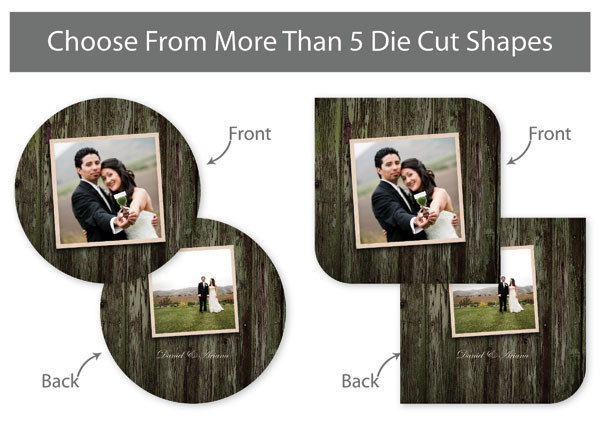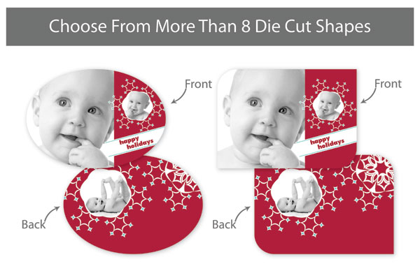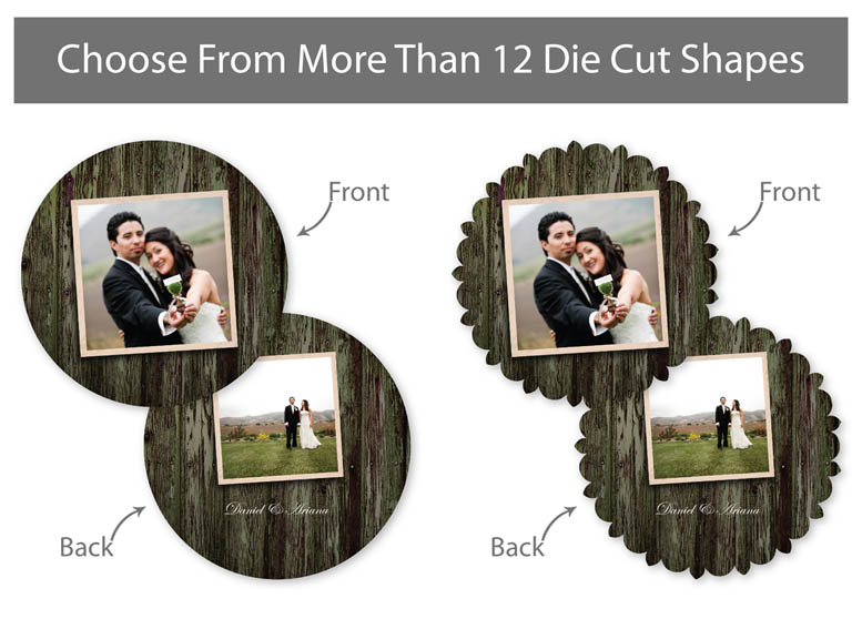 Our professionally designed templates are a great choice for a hassle-free and high-impact presentation! These templates are free and easy to use in Bay ROES. Simply drag-and-drop your images into the templates, and customize your text. Each design is available in 3x3, 5x5 and 5x7 sizes in a wide variety of die-cut shapes. If you prefer to design your own cards, you can download blank PSD templates here.