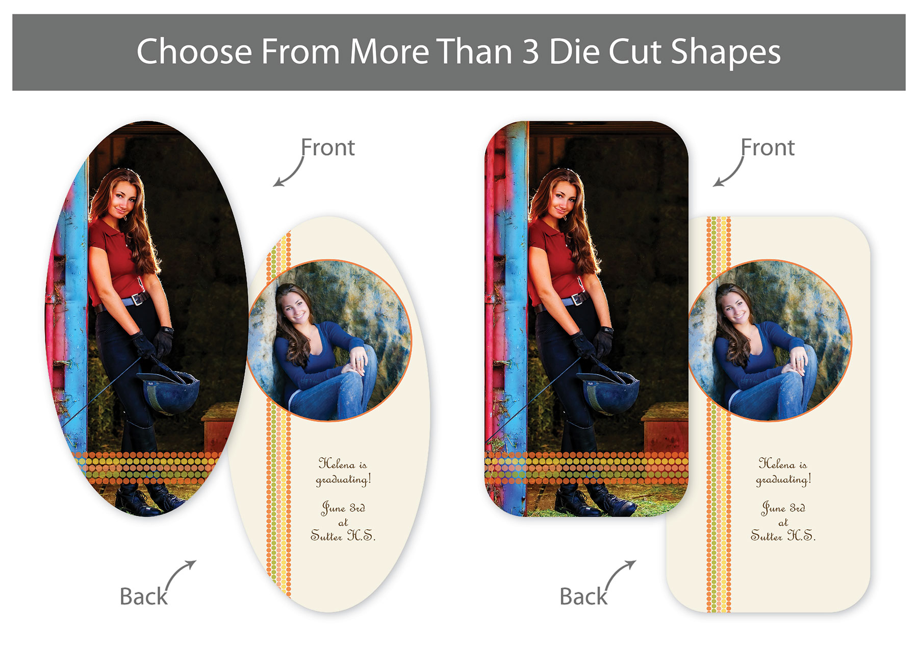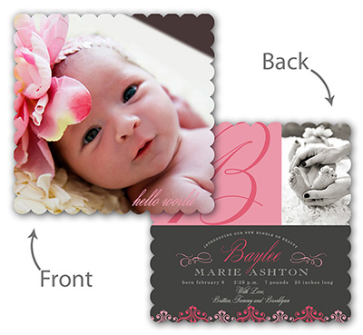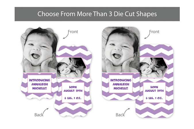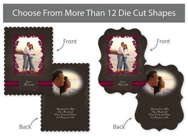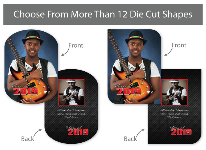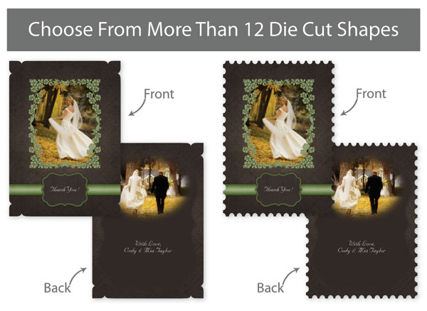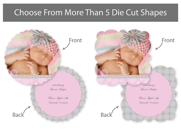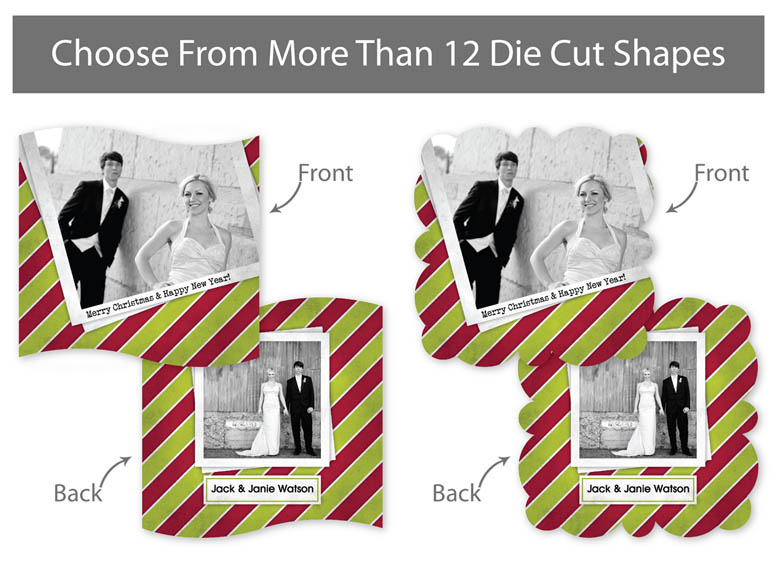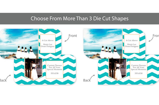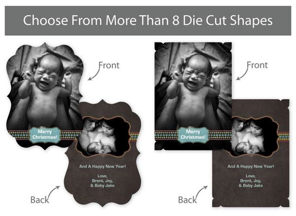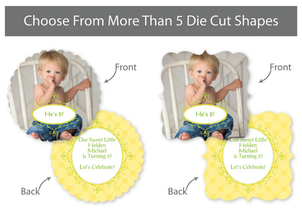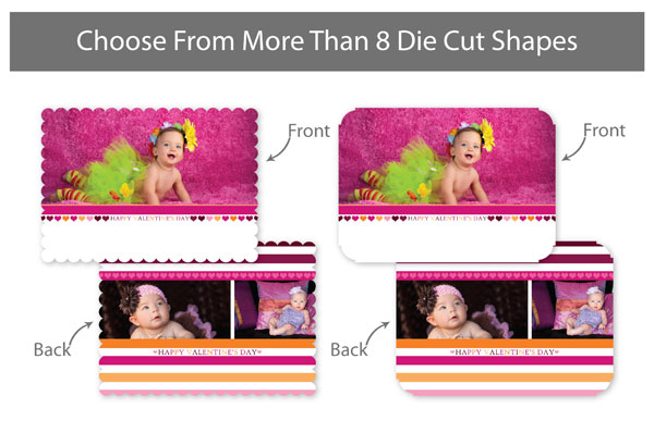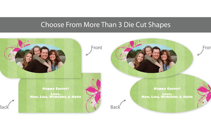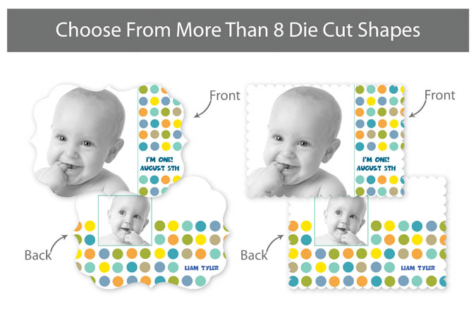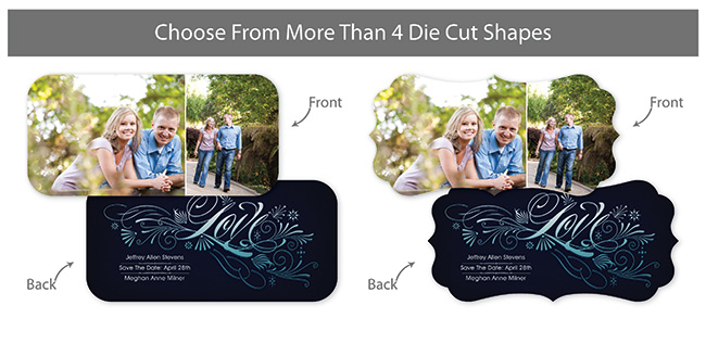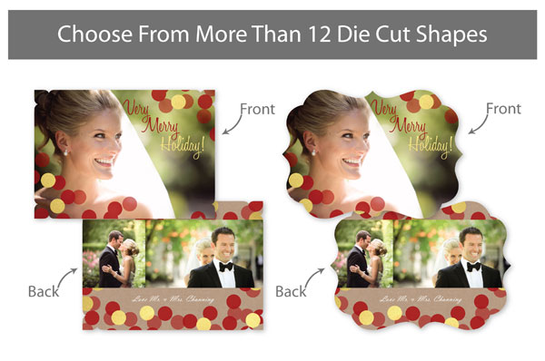 Our professionally designed templates are a great choice for a hassle-free and high-impact presentation! These templates are free and easy to use in Bay ROES. Simply drag-and-drop your images into the templates, and customize your text. Each design is available in 3x3, 5x5 and 5x7 sizes in a wide variety of die-cut shapes. If you prefer to design your own cards, you can download blank PSD templates here.
