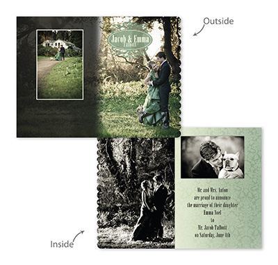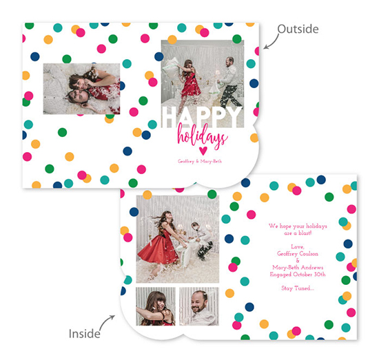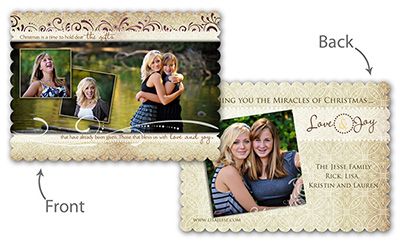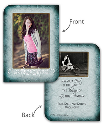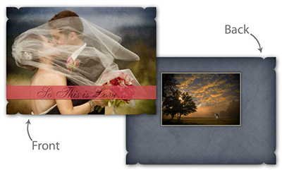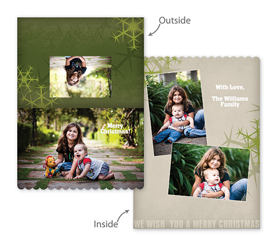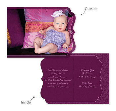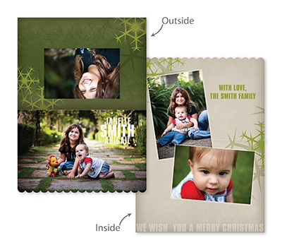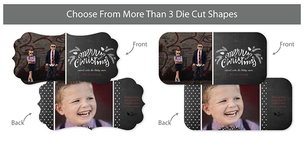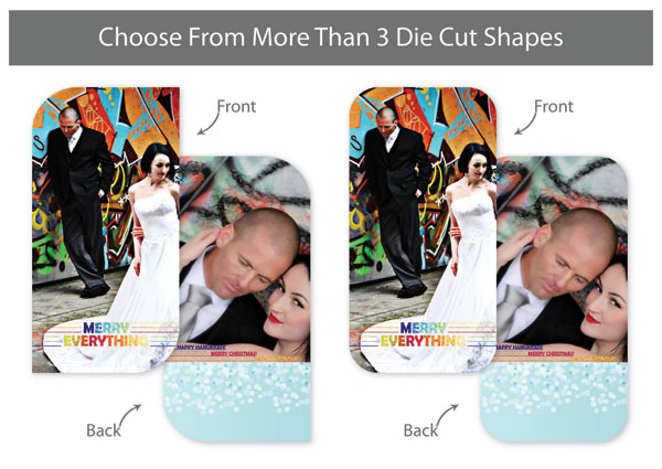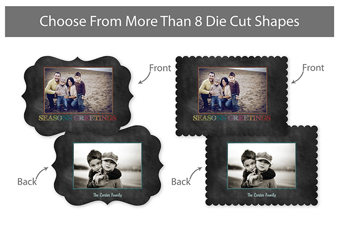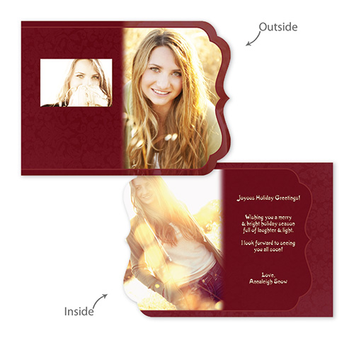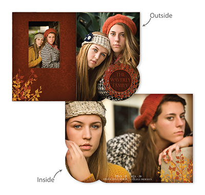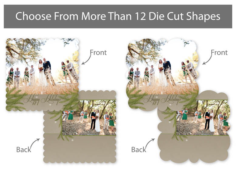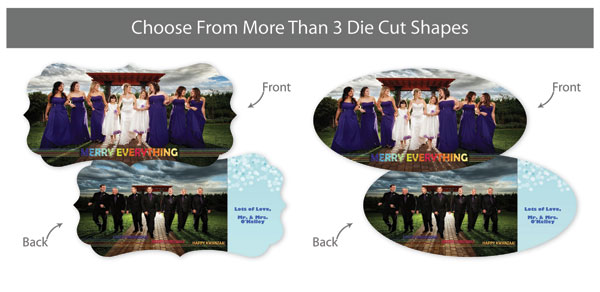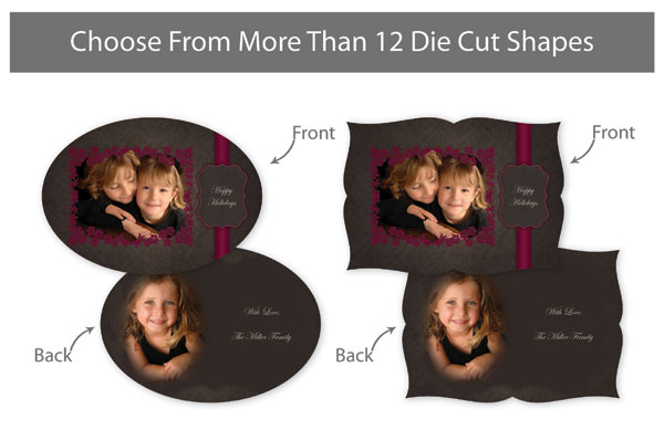 Creative Edge Cards are available in 5x7, 5x5, 3x3, 2½x3½ (Wallet), Ornament, and PopOut formats.