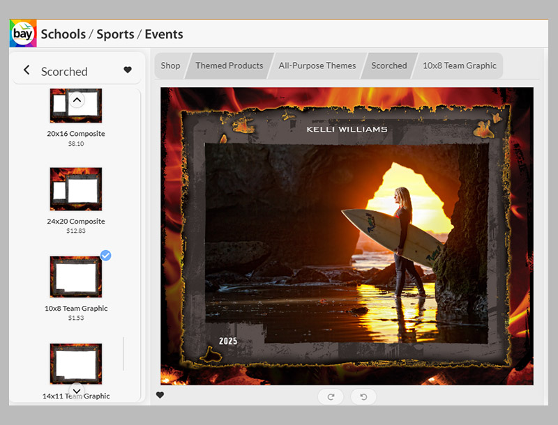 Get The DetailsSports & Events Online is perfect for those jobs where a higher degree of design control is necessary. Create individual custom crops and text for each subject or product as you like. Easily use your own designs to create our specialty products like Trader Cards and more.