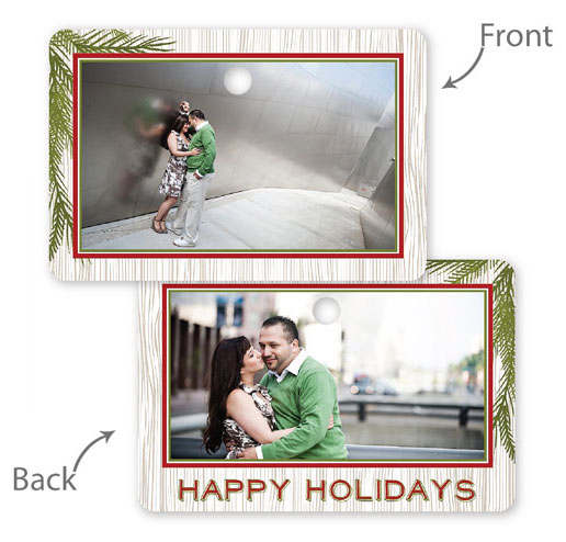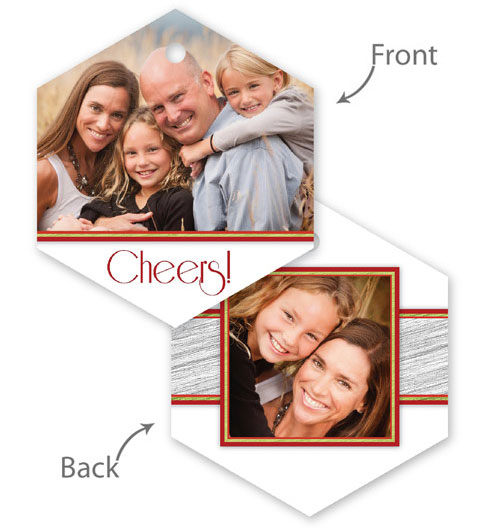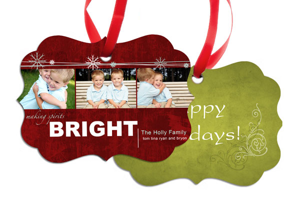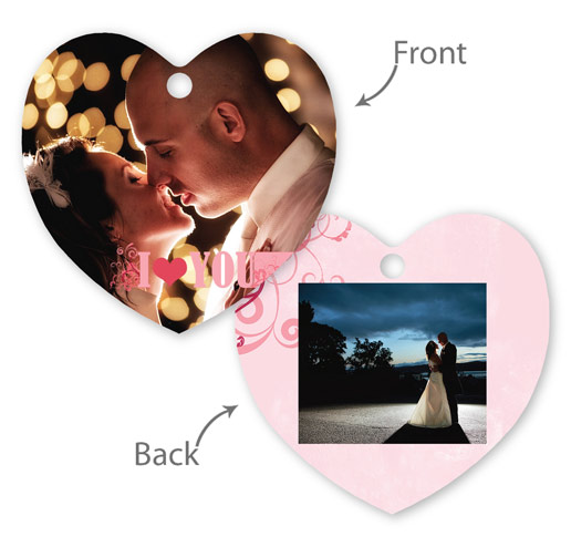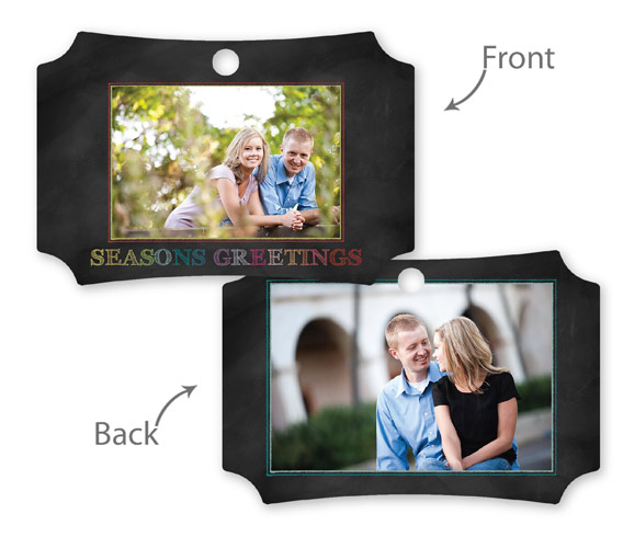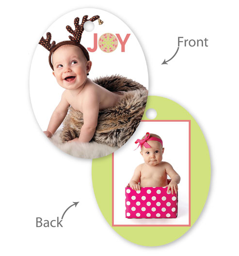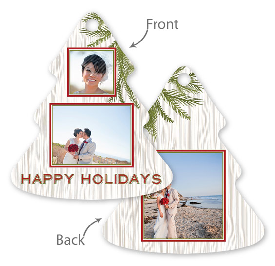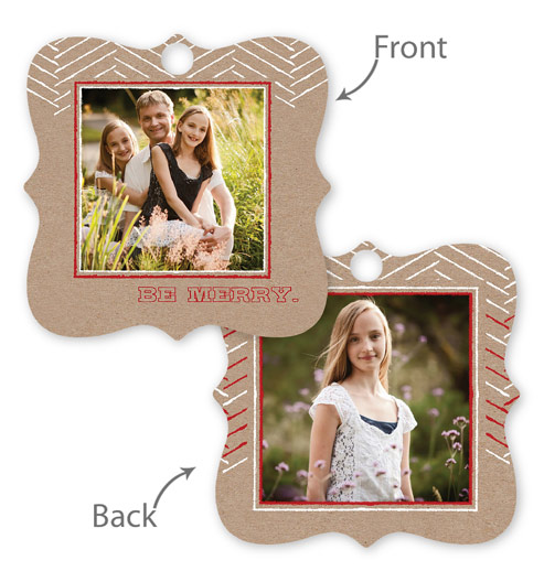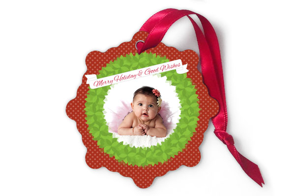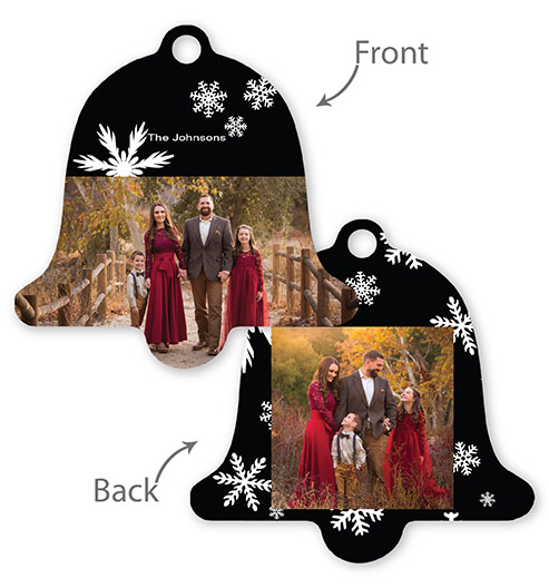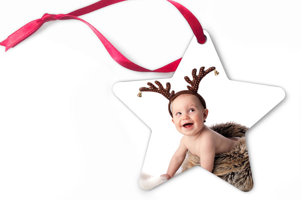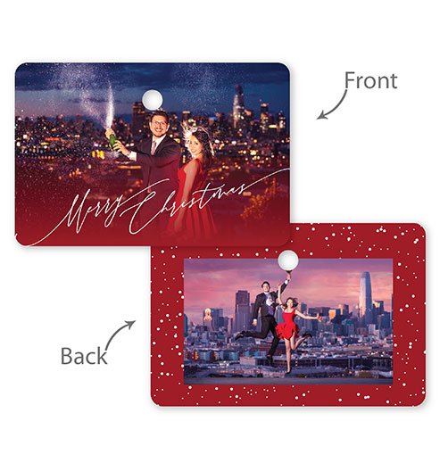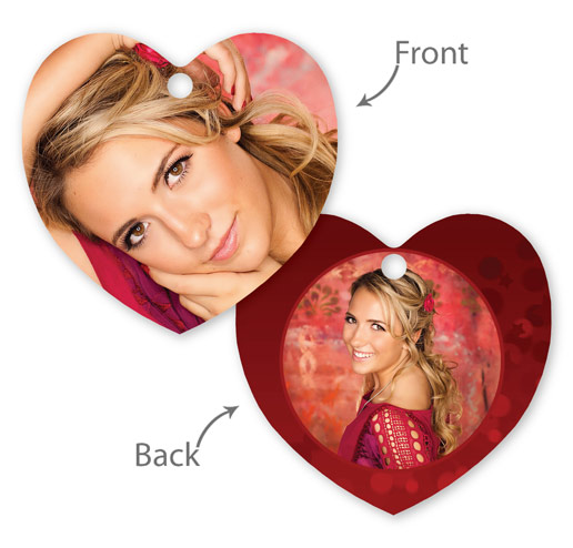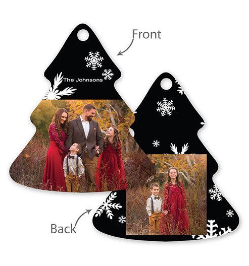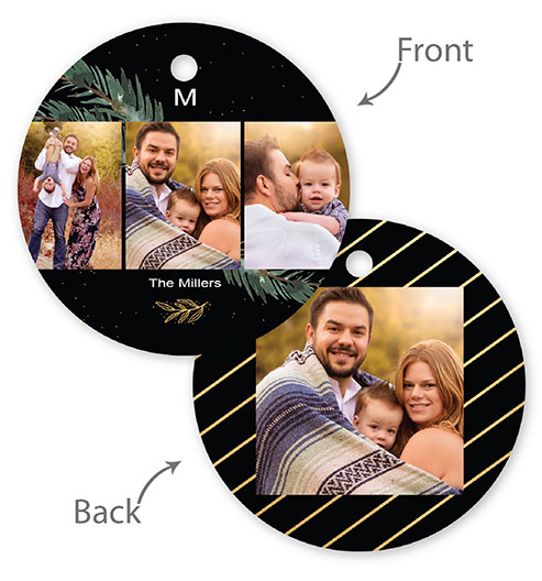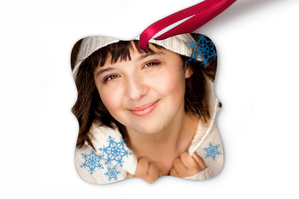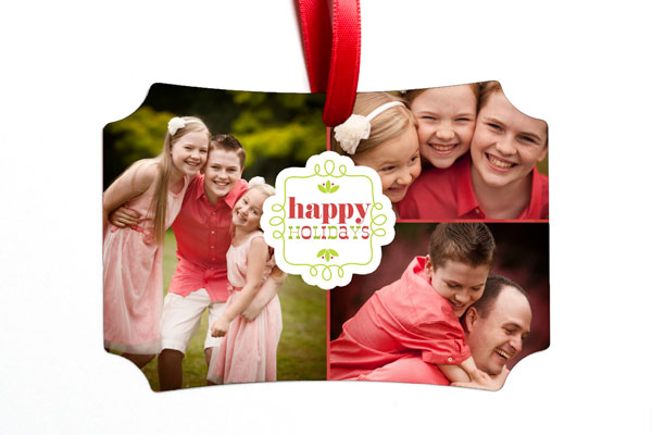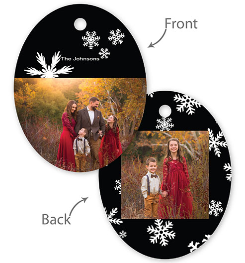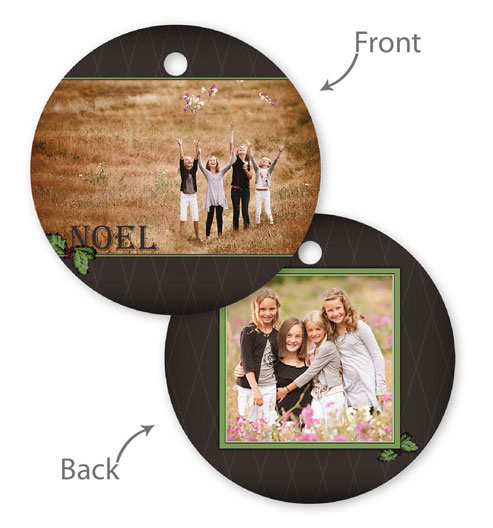 Double-sided Metal Print Photo Ornaments are sold individually and include a red ribbon for hanging.