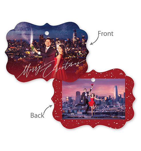Get The DetailsMetal Ornaments are made using the same state-of-the-art process as our full-size MetalPrints™. Dyes are infused onto specially coated aluminum, for a special memento with exceptional durability. Double-sided and delivered ready to hang, with a red ribbon attached.