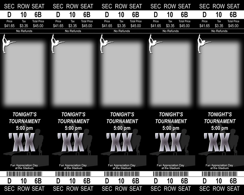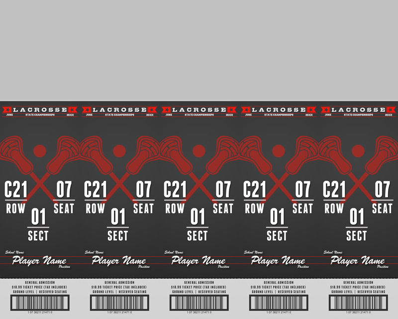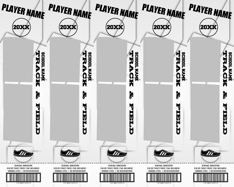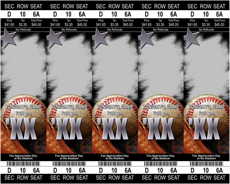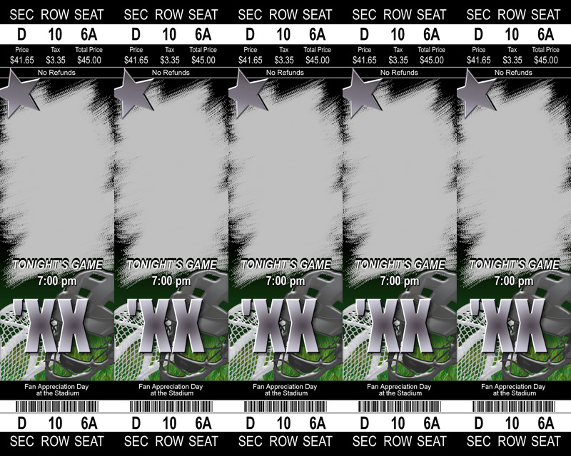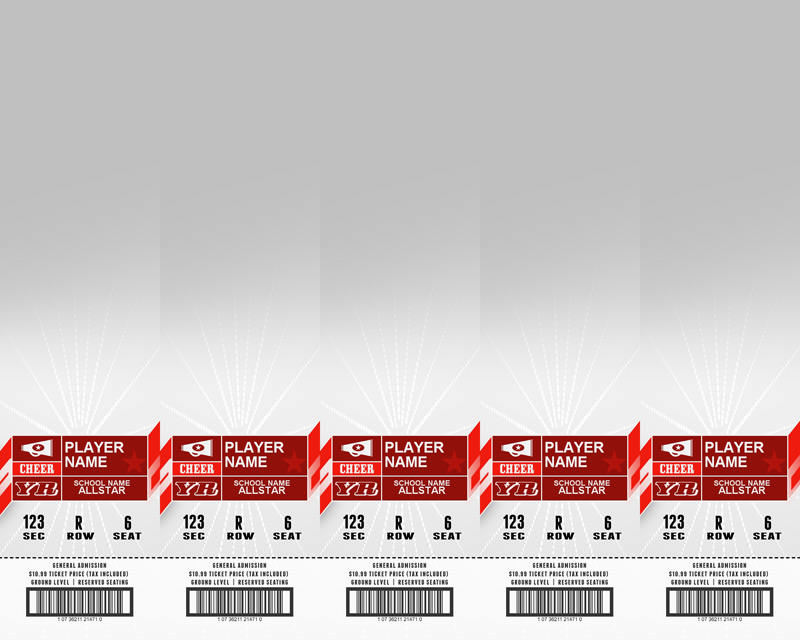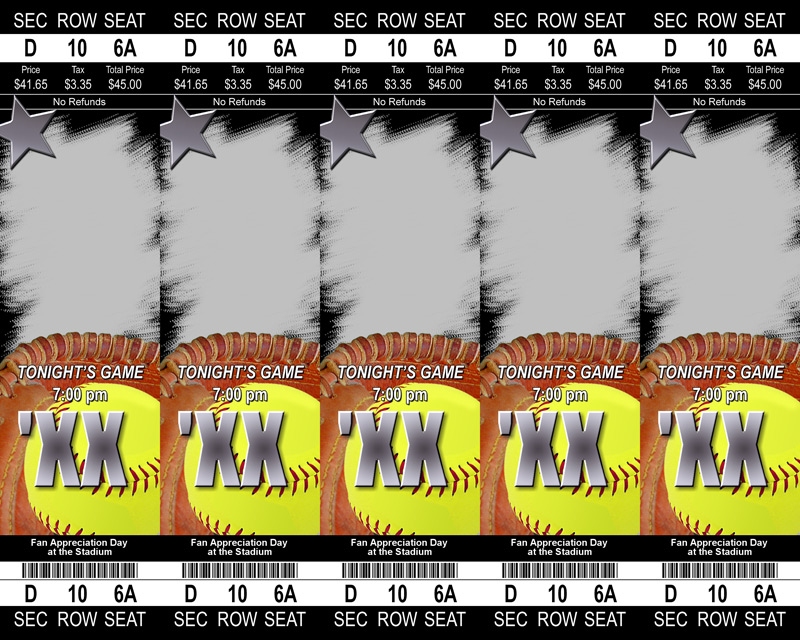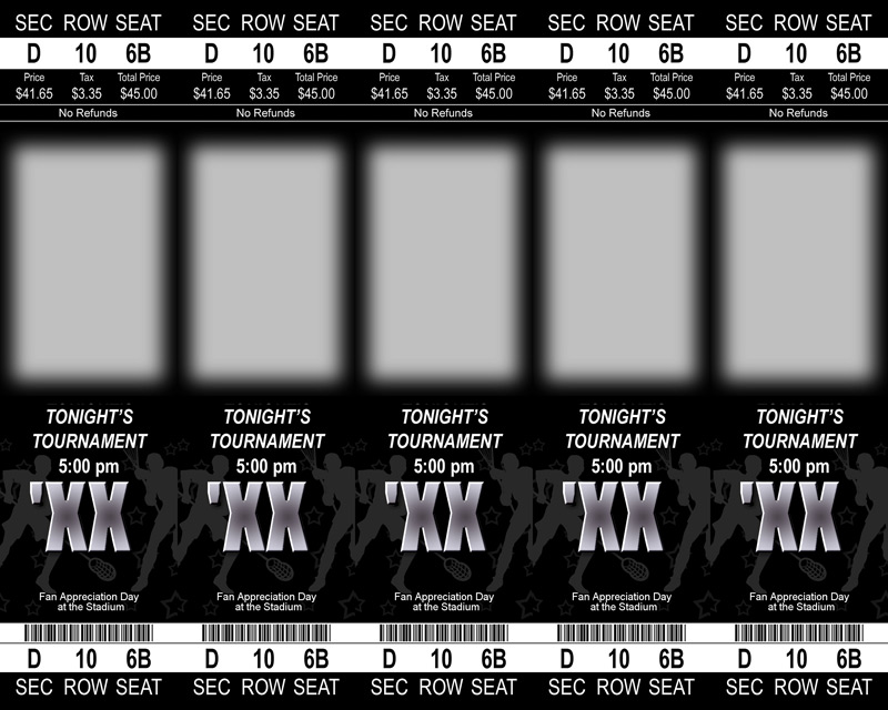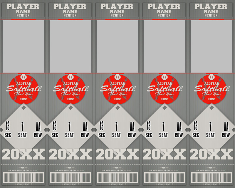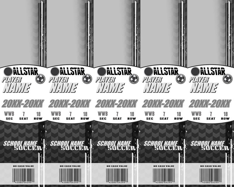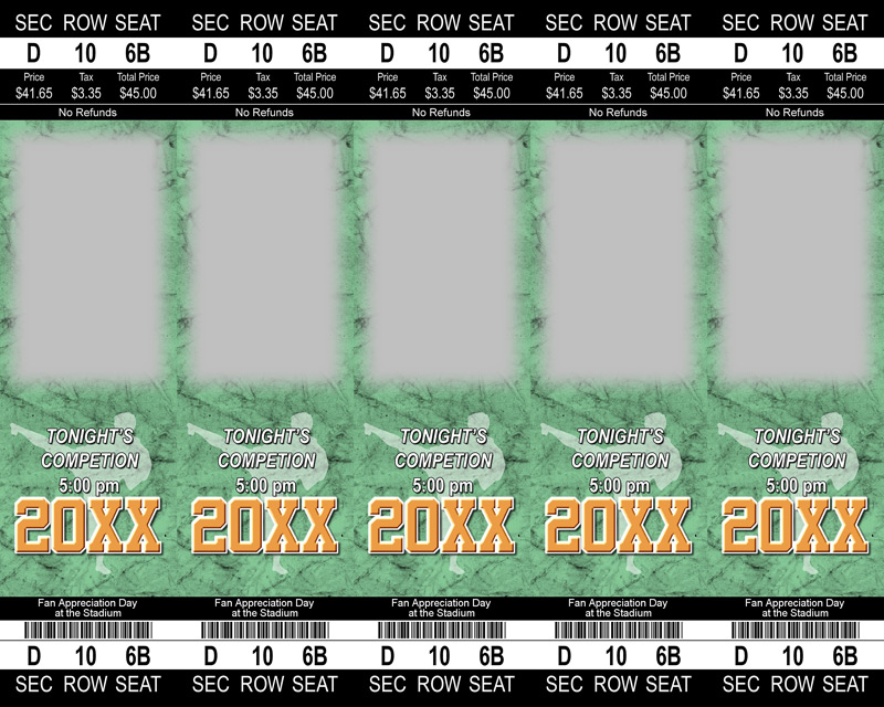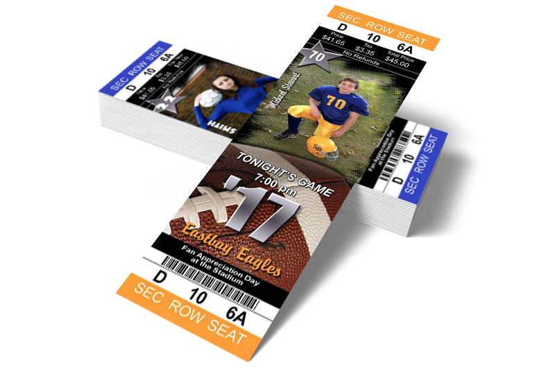 Get The DetailsAvailable in standard 2x8 and "Big Ticket" 10x30 sizes. Each Ticket has room to add the player's number, name, school, date, and/or other custom text. Available in a wide variety of styles and themes, including softball, baseball, volleyball, swimming, cheerleading, football, basketball, lacrosse, field hockey, martial arts, golf, bowling, soccer, generic/all-sports, and many others. Use our pre-built templates, or create your own designs.