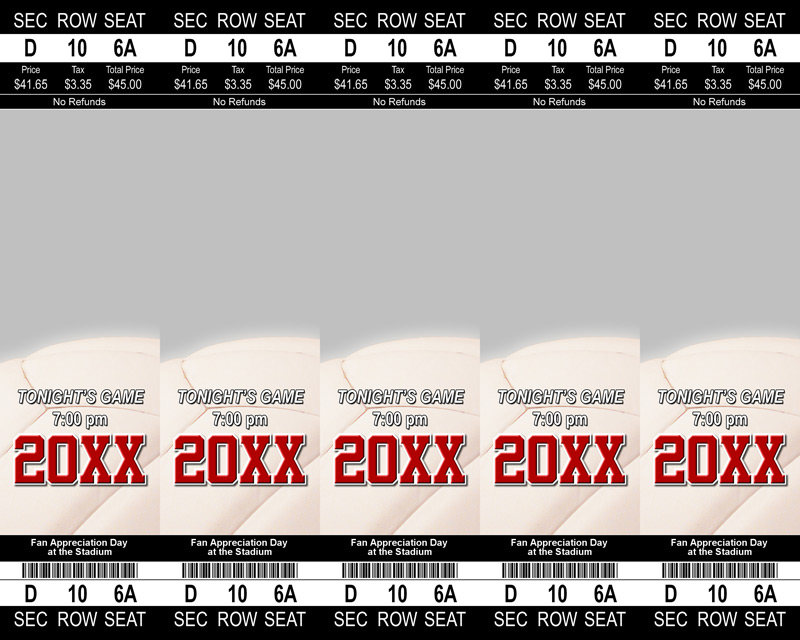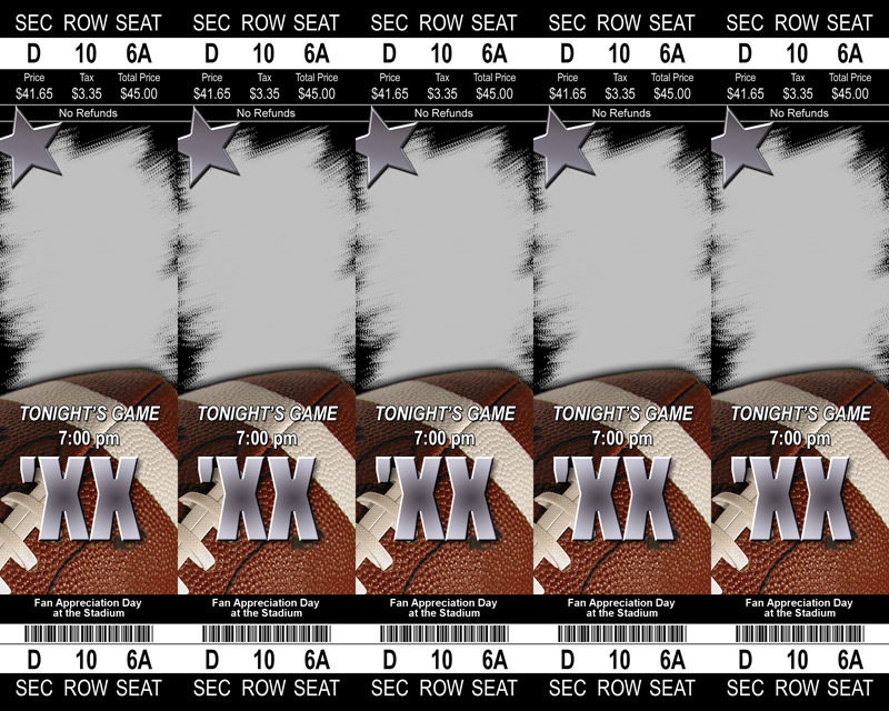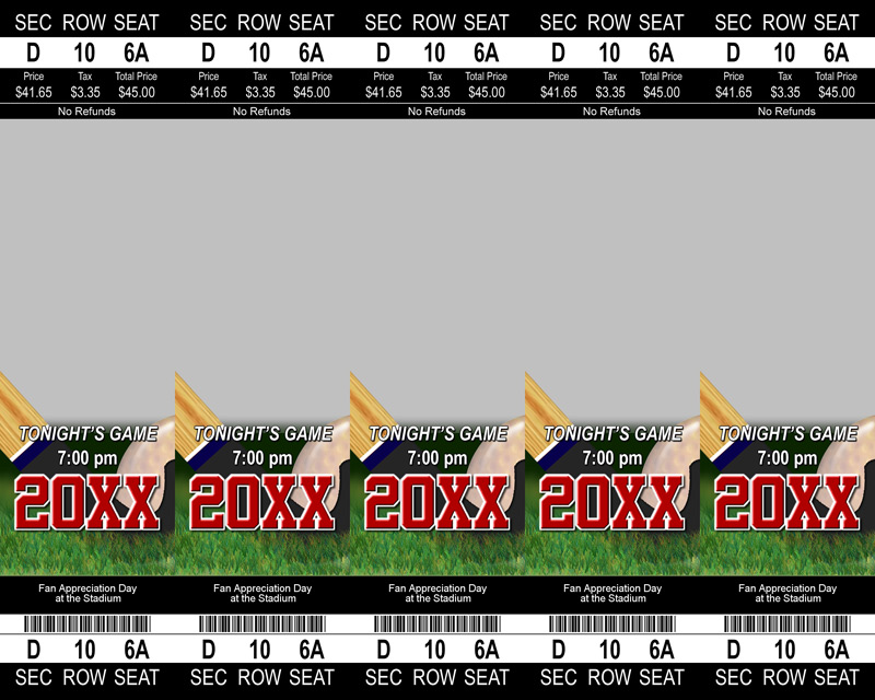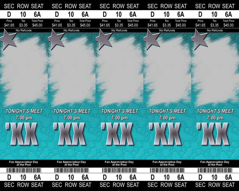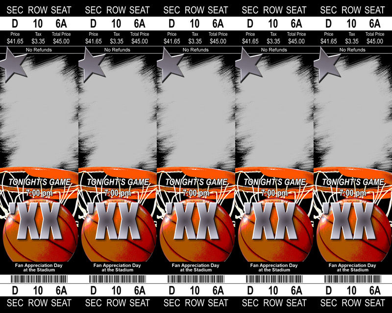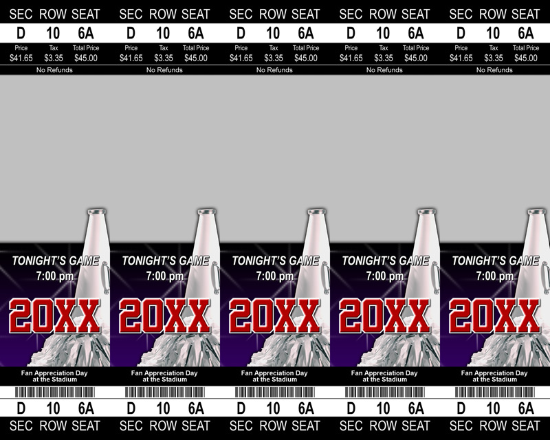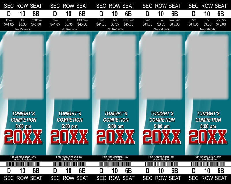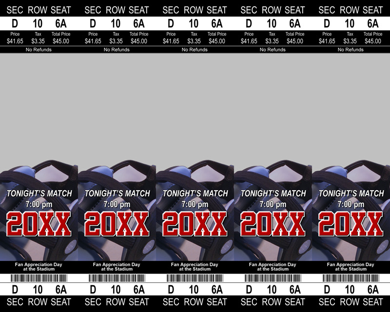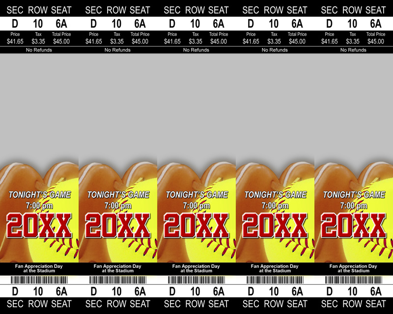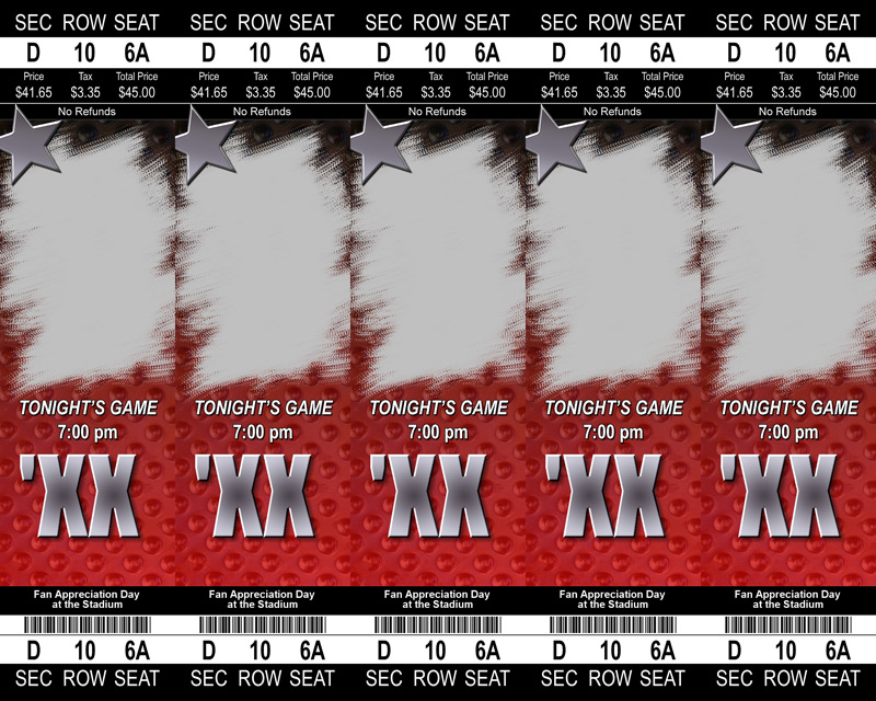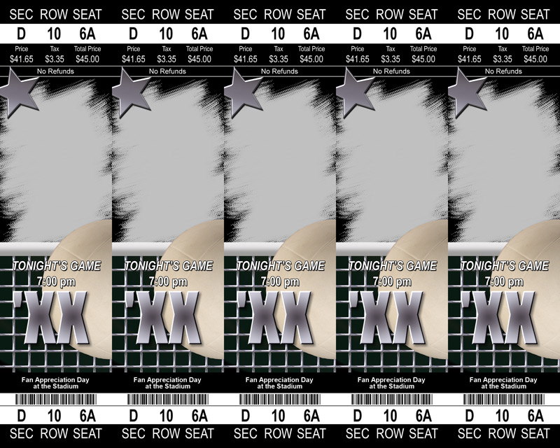 Get The DetailsAvailable in standard 2x8 and "Big Ticket" 10x30 sizes. Each Ticket has room to add the player's number, name, school, date, and/or other custom text. Available in a wide variety of styles and themes, including softball, baseball, volleyball, swimming, cheerleading, football, basketball, lacrosse, field hockey, martial arts, golf, bowling, soccer, generic/all-sports, and many others. Use our pre-built templates, or create your own designs.
