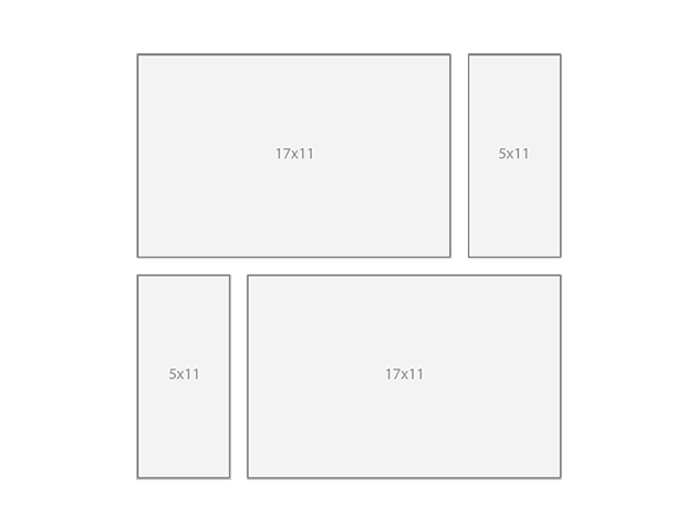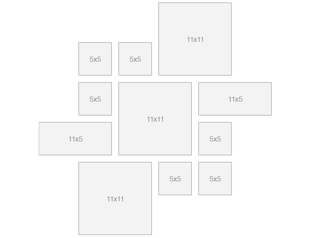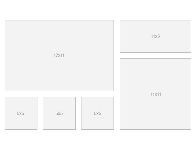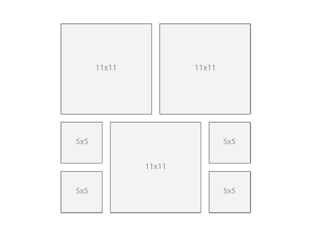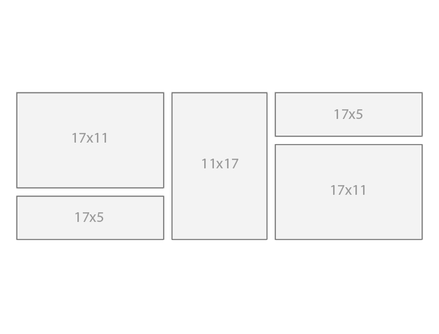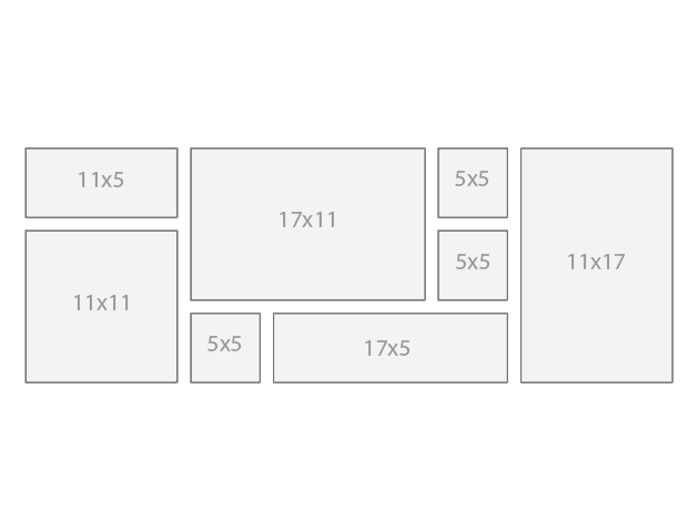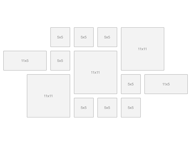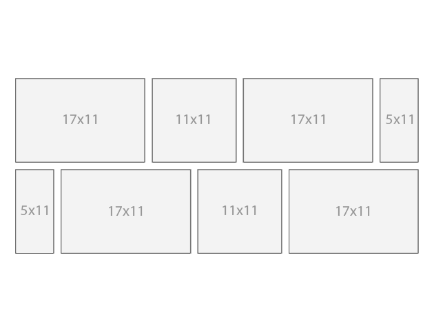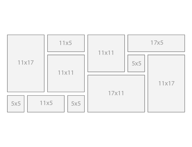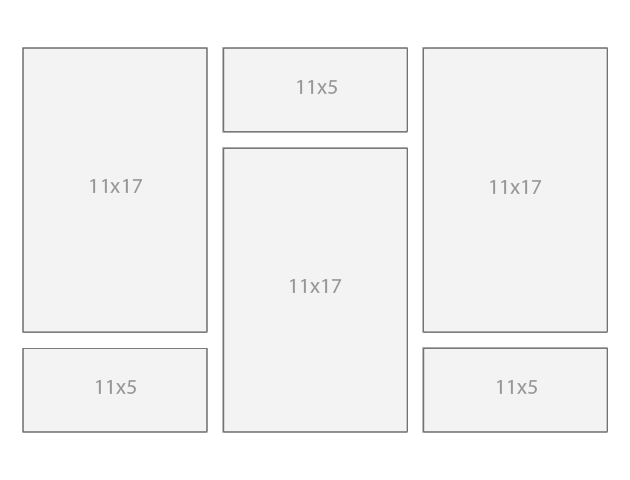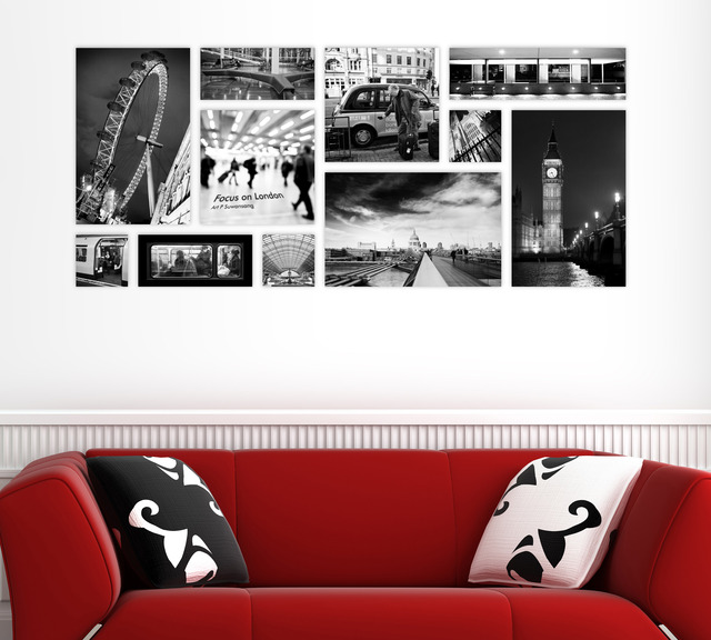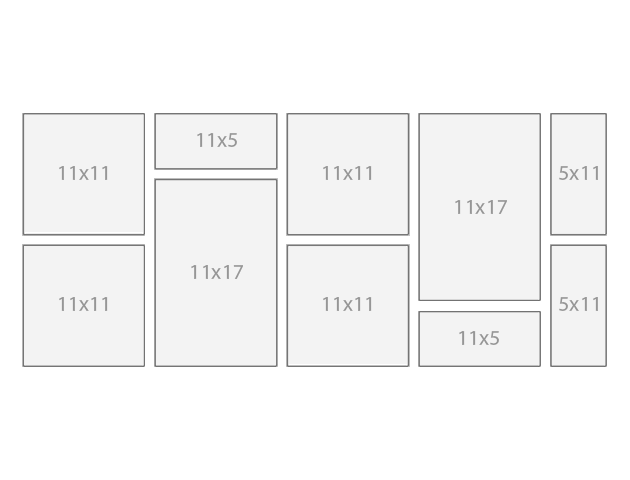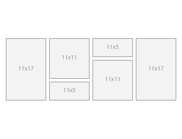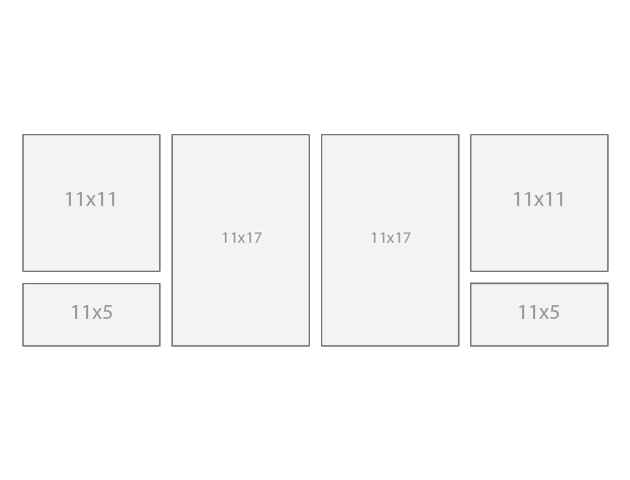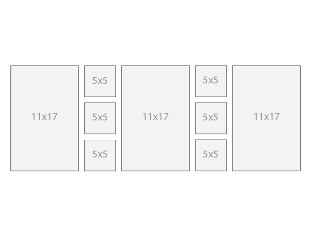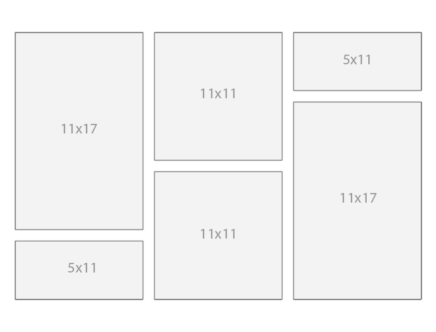 Choose from dozens of layouts. In the CollageWall® Catalog of Bay ROES or Online, just drag-and-drop your photos into one of these templates. Prices include everything: Prints on Photo Paper mounted on black-edged 2mm masonite or MetalPrints, hanging hardware, paper template and the customized installation experience.
