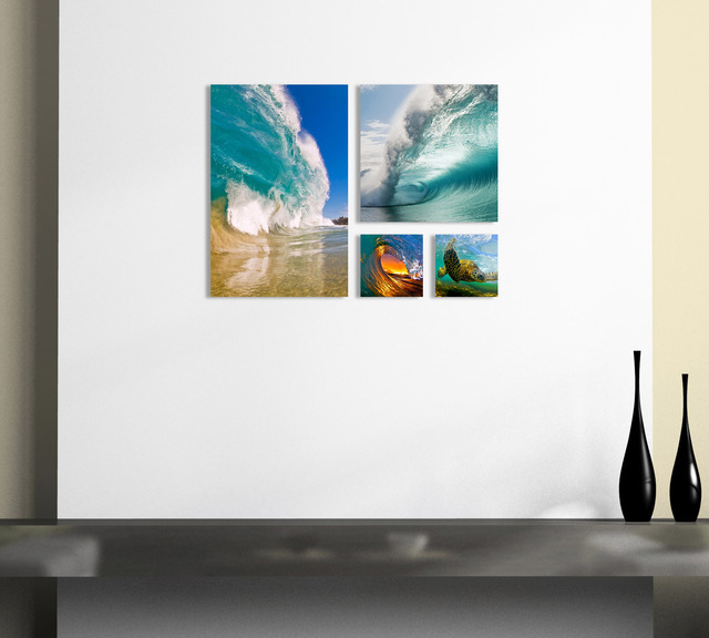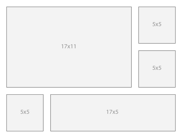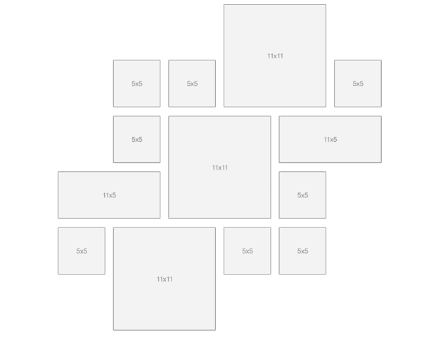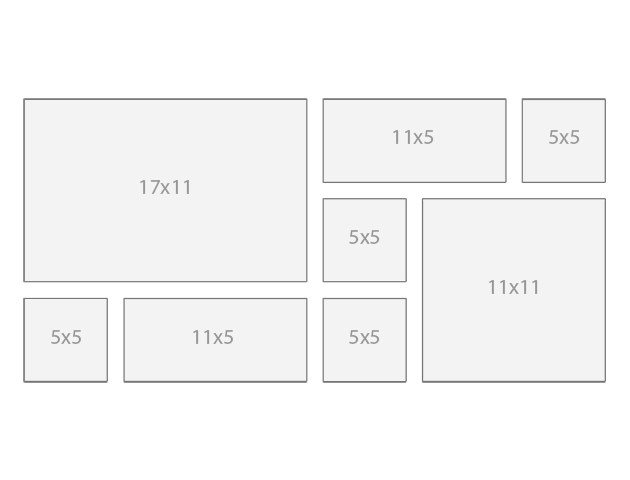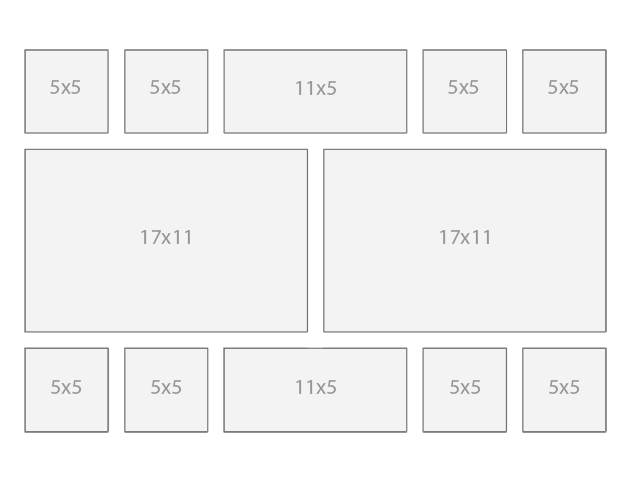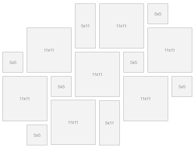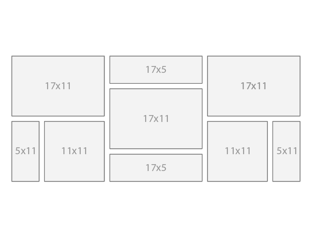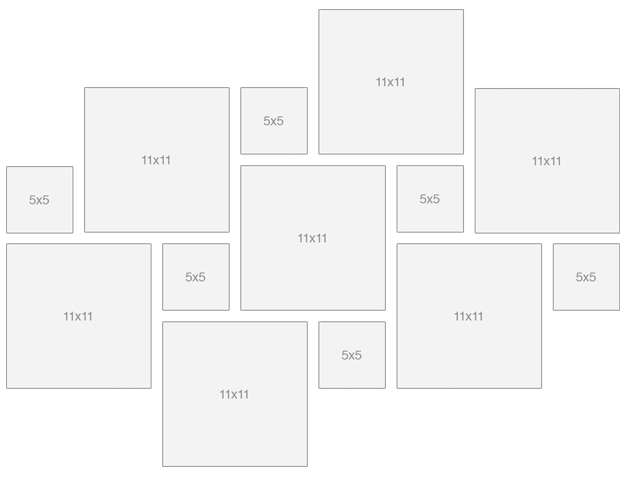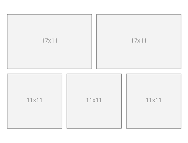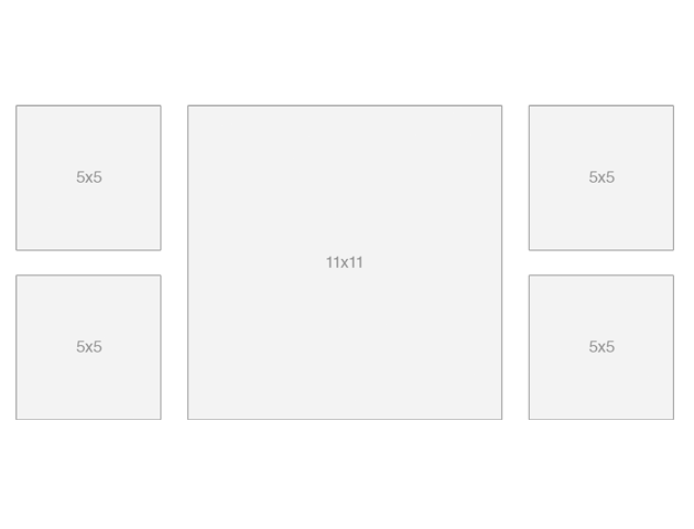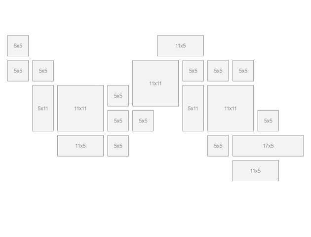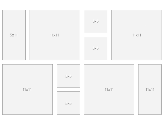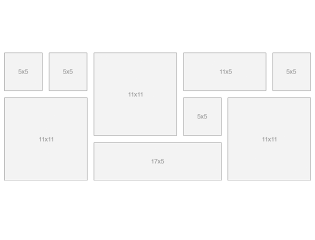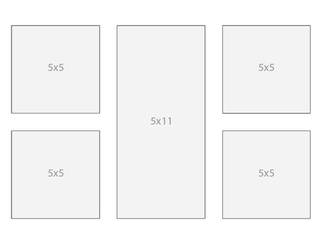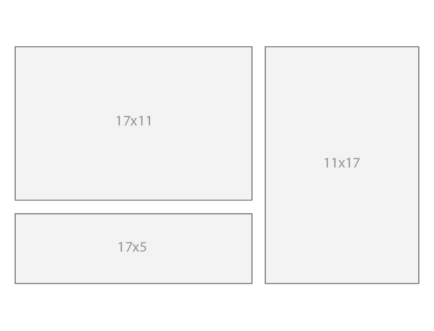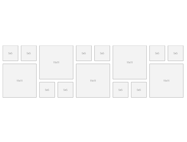 Choose from dozens of layouts. In the CollageWall® Catalog of Bay ROES or Online, just drag-and-drop your photos into one of these templates. Prices include everything: Prints on Photo Paper mounted on black-edged 2mm masonite or MetalPrints, hanging hardware, paper template and the customized installation experience.