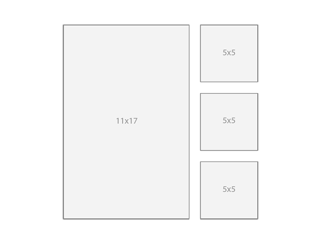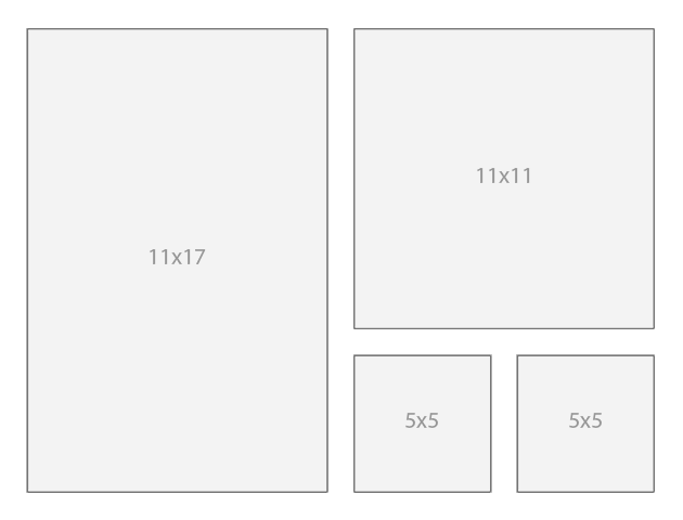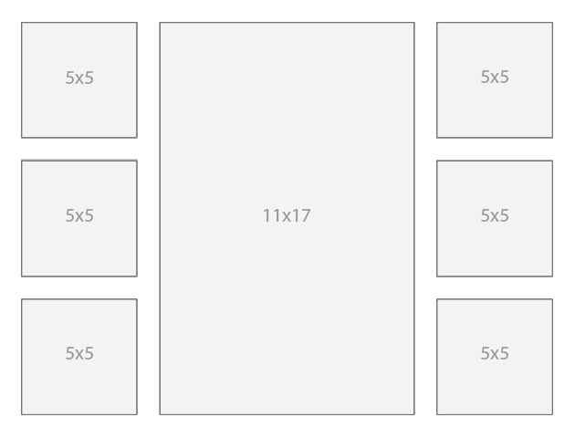 | Á La Carte CollageWall Photographic Prints 5x5 $10.20 5x11 $18.32 5x17 $27.52 11x11 $36.71 11x17 $54.98 |