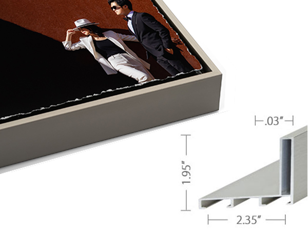 Fine Art Prints are floated over your choice of mat color with a 1/2, 1, 1.5, 2, 2.5, or 3 inch reveal and finished with your choice of Reveal Frame above.