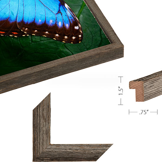 Barnwood frames are produced from re-purposed wood harvested from old barns, floor boards, marine wood, and fences from the Santa Cruz, California area. The wood is cleaned before use, but roughness, imperfections and discoloration are inherent to the material making each handcrafted Barnwood Frame truly one-of-a-kind.