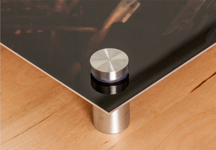 Standoff Posts float the print 1" out from the wall when hung for a modern display with added dimension. Choose from Stainless Steel Standoff Posts in 5/8" and 1" sizes. Posts come in a set of four pieces, one for each corner*. Optional 1/4" or 1/2" Acrylic can also be secured with the Posts to the face of the MetalPrint. (* Note: 48x96, 43x96, 40x90, 40x80, 40x70, and 30x90 sizes will come with 6 posts.)